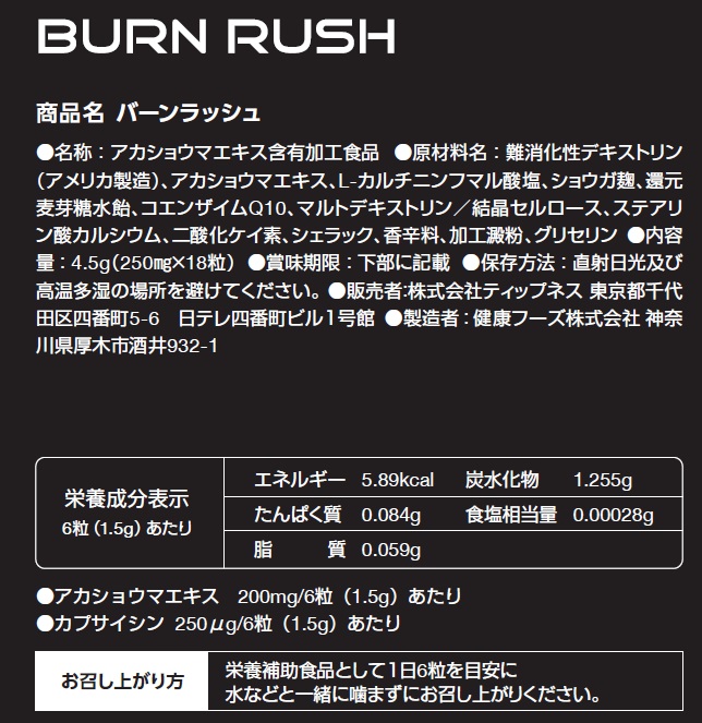近年注目を浴びている、希少な「アカショウマエキス」を主要成分とします。その他L-カルニチン、コエンザイムQ10、ショウガ麹など、こだわりを持って選び抜いた成分を配合しつつも、アカショウマを使用した他社の製品と比べ価格を抑えることに成功しました。
