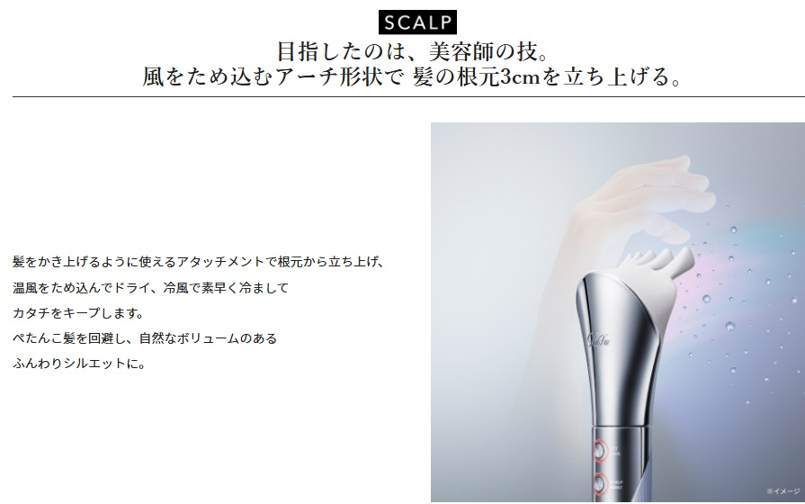 プロがヘアブローでつくり上げるような、顔がキュッとみえる「ひし形シルエット」を、3つのアタッチメントによって誰でも再現可能にした軽量スティック型。