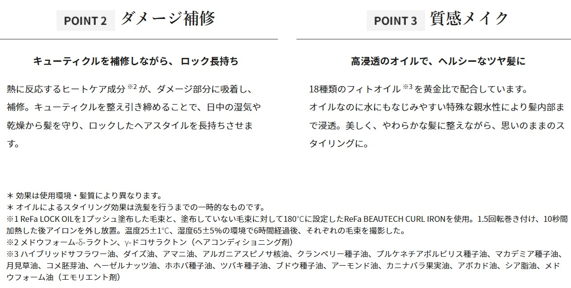プロフェッショナルの熱コントロールに着想を得た独自の処方で、カールもストレートも、時間がたってもロックをかけたまま。