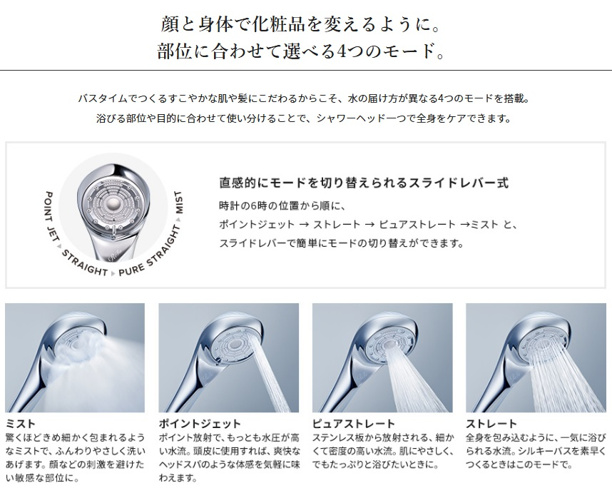 独自の水流設計と組み合わせることで、浴びるだけで肌の汚れをやさしく落とし、心地よく温め、みずみずしいうるおいをお届けします。