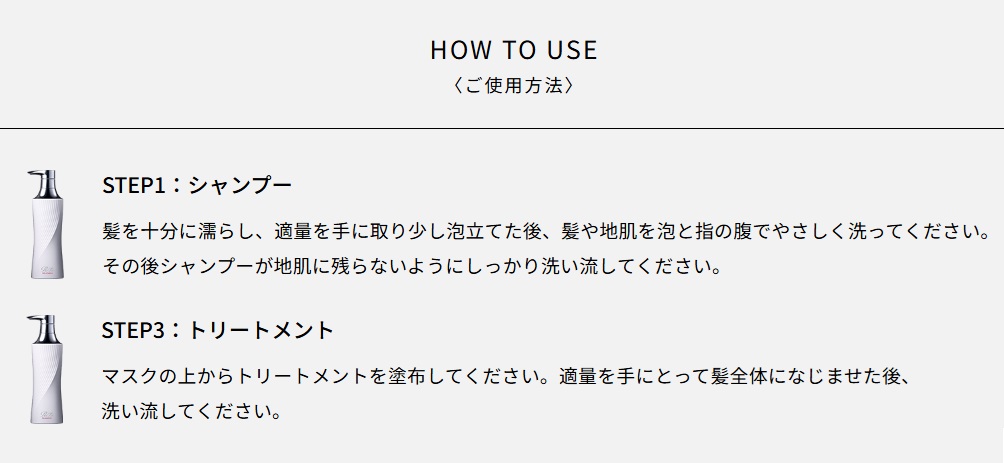 トリートメントを塗布してください。適量を手にとって髪全体になじませた後、洗い流してください。